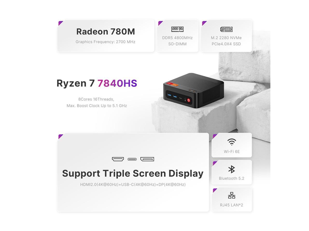 - Upgraded Mini PCAG2 Mini Computers are powered by Ryzen 7 7840HS (8C/16T, Up to 5.1Ghz) processor with advanced Zen 4 architecture and 4nm process.Provides superior multitasking and productivity performance, resulting in faster app response times, shorter load times, and a smoother experience that significantly increases productivity and fluency.