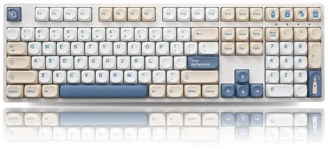 Custom Keycaps: Thick PBT keycaps are thick and have a high quality sound texture. Cream and blue keycaps are ideal for customizing your keyboard