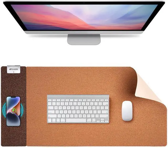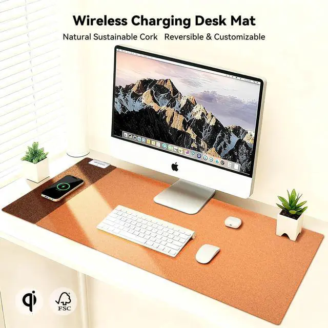 Declutter Your Desk, Simplify Your Life! This dual-sided wireless charging mouse pad blends natural sustainability with smart technology to create a clean, efficient workspace or vanity area. Why Choose Our Wireless Charging Mouse Pad?