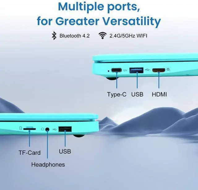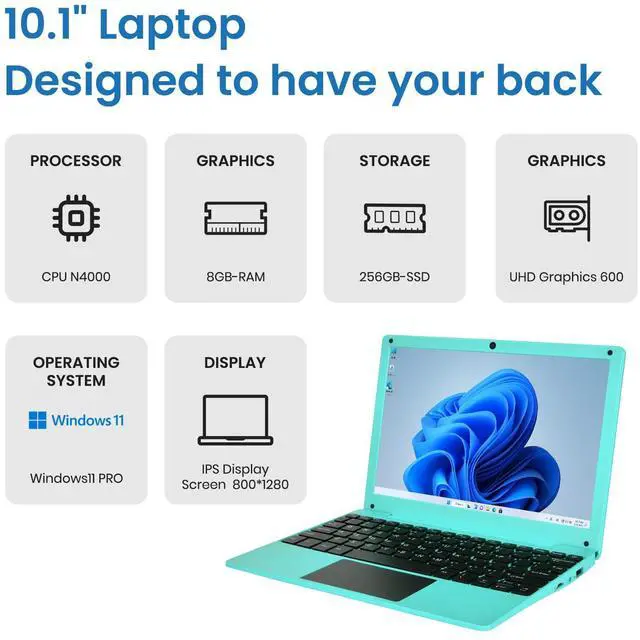 Fwmntu Mini Laptop Computer with Celeron N4000, 8GB RAM, 256GB SSD, HD IPS Screen, Portable Educational Notebook for Learning, Office Work Blue