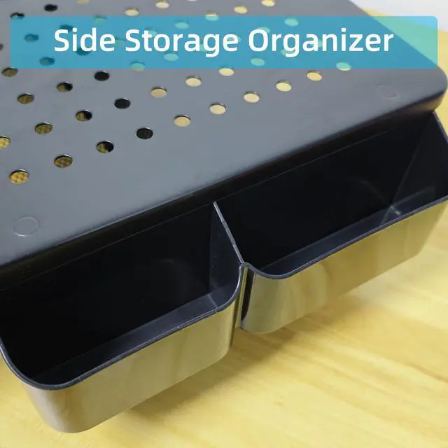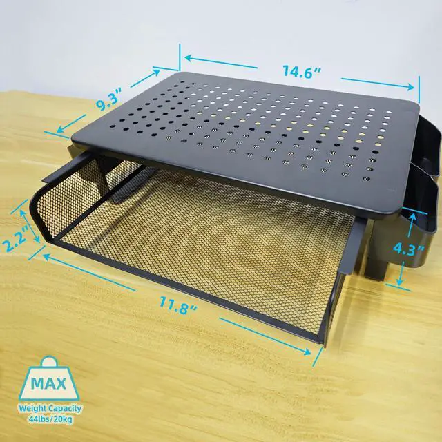 Its unique design includes vented holes that promote airflow, preventing overheating and ensuring your devices operate efficiently. Upgrade your office setup today with this stylish and practical monitor stand riser that combines functionality with a sleek aesthetic. Perfect for home or office use, it's the ideal solution for a more organized and comfortable work environment. With its sleek design and practical functionality, this stand organizer is an excellent addition to any modern office or home setup, enhancing productivity and comfort.