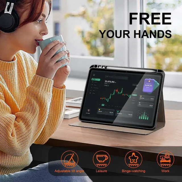 Multi-Angle Viewing & Typing Features adjustable stand slots for multiple horizontal angles, ideal for watching videos, typing, or drawing. Enjoy hands-free convenience while maintaining stability on any surface.
