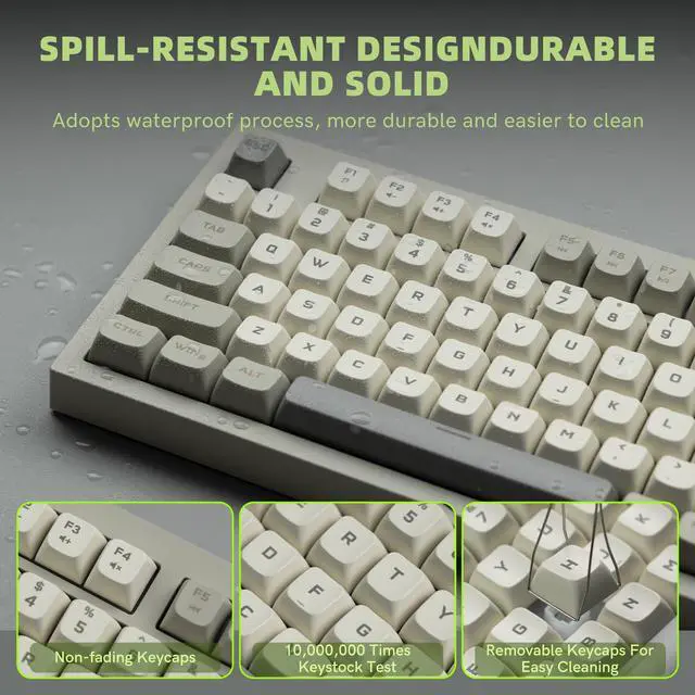 Rainbow Light Up Gaming Keyboard with Retro PBT KeycapDesigned with cool rainbow LED backlit, Retro PBT keycaps and non shine through characters,this wireless gaming keyboard can always catch your eye with light or no light,fit your fingertip curve better,provide a comfortable typing feeling and clear letters,perfectly match your different room theme styles.
