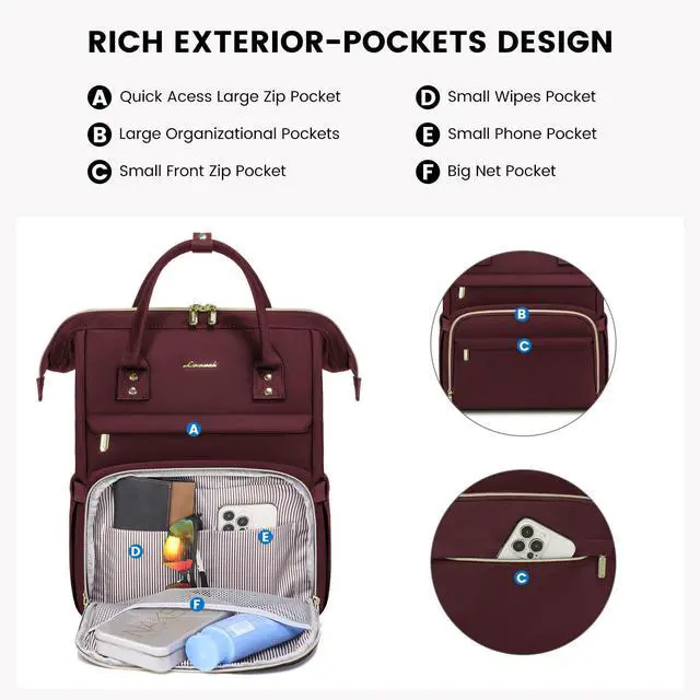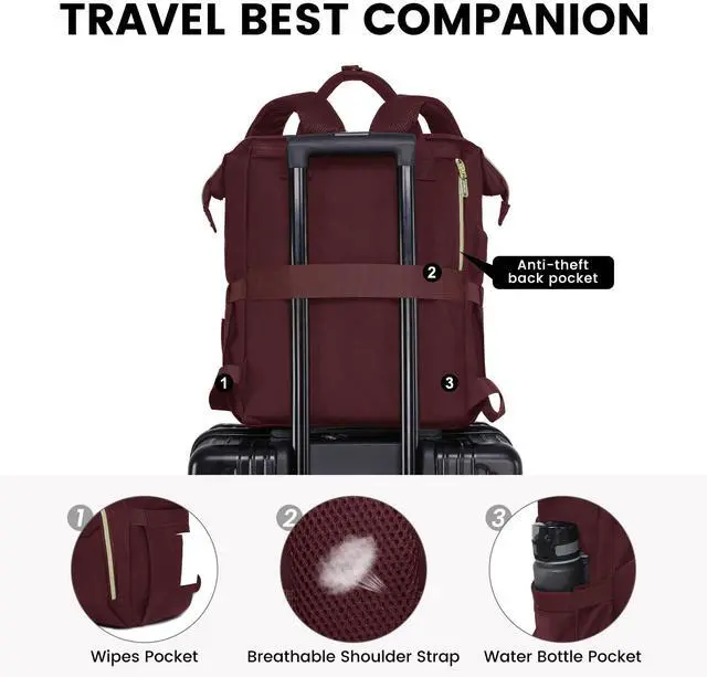 Enhanced Durability: Lovevook's latest women's laptop backpack features waterproof, tear-resistant fabric and robust zippers. Reinforced straps endure heavy loads