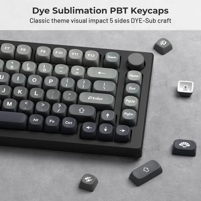 Durable PBT KeycapsThese custom keycaps are made of textured, high-grade PBT and are resistant to wear, friction, and solvents. Ensure a better user experience.