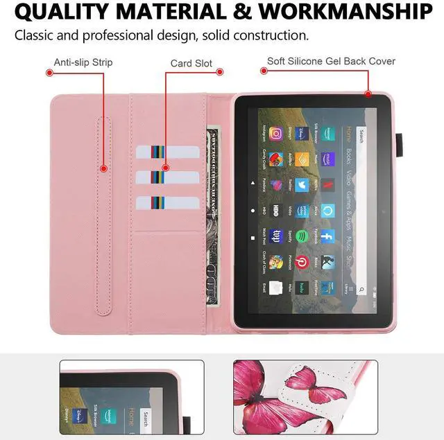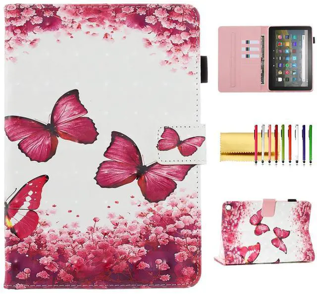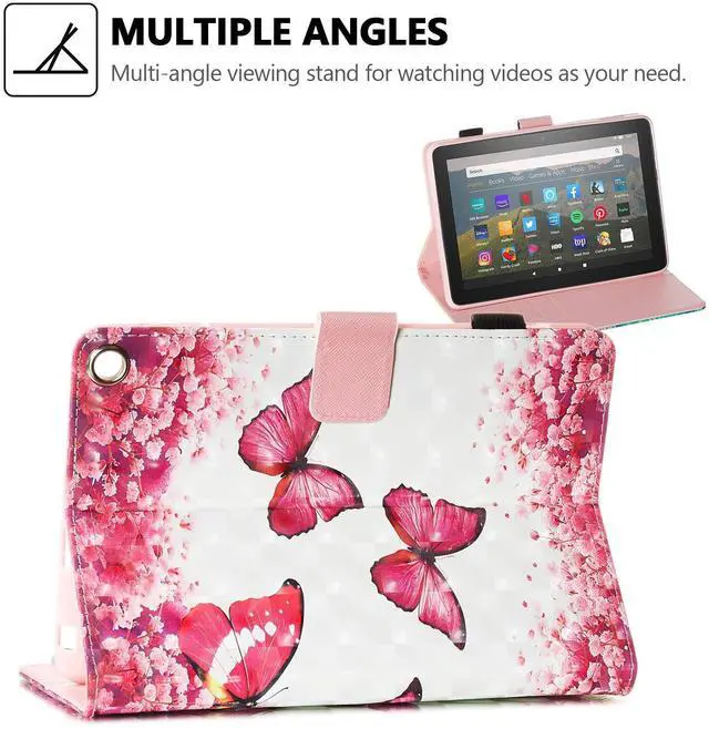 3D Printed PU Leather Protective Case for All-New Fire HD 8 2022/2020 Smart Wallet Case with Stand, Auto Sleep/Wake