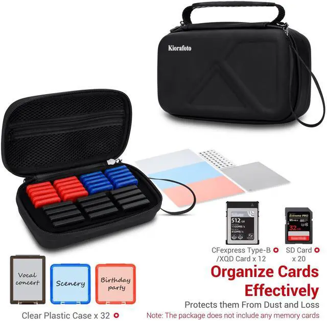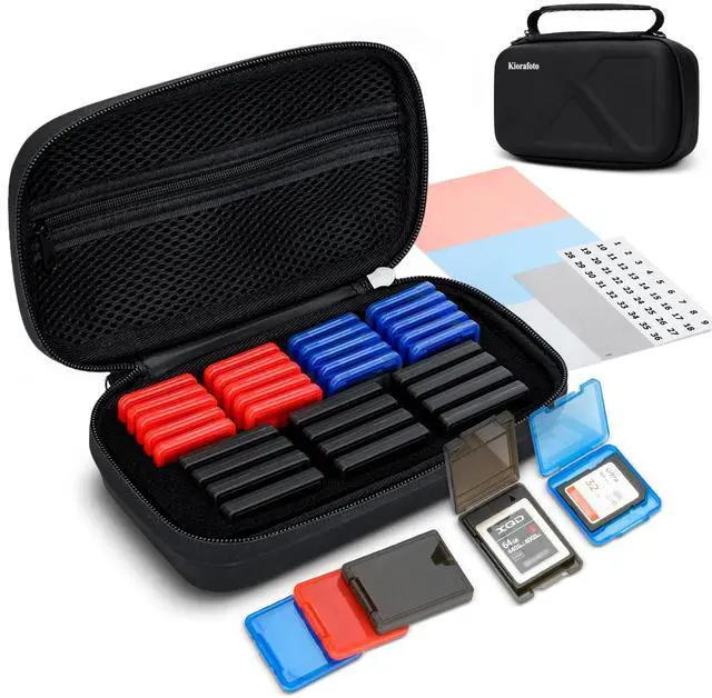 Multi-Color CaseIt comes with transparent XQD & SD card holders in black, red, and blue colors to meet your different color preferences. The contents of the memory card can be classified according to color. The package also includes a label sticker and a number sticker, making it easy to organize the memory cards, and providing mo