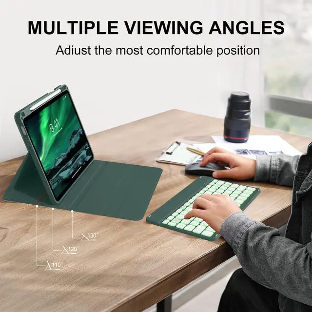 Multiple Viewing AnglesThis for iPad Air 11 inch 5th/4th gen iPad case with keyboard has 3 grooves to adjust the viewing angle as you like, Keep your iPad more stable in the groove, which makes iPad work like a laptop, so it is perfect for working, typing, editing or watching vide