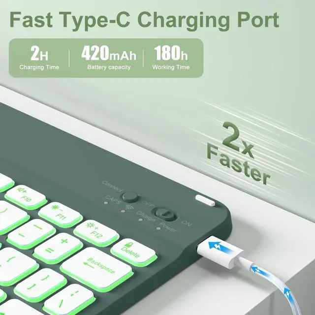 Long Life Battery Rechargeable KeyboardThe wireless keyboard for iPad Air 11 inch built-in 400mAh premium Li-ion battery with energy-saving mode. Faster charging with Type C connector for keyboards, port 2-3 hours full charge, work for at least 180 hours. Perfect for home, office or school use, convenient for studying and working on the go.