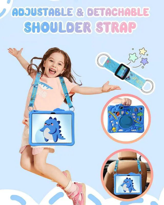Boaretiu for iPad A16 Case/10th Generation Case - Blue Dinosaur Cool for Boys Girls Teens Soft Silicone Cute with Shoulder Strap & Rotating Stand Case for iPad A16 11th Generation 11 Inch 2025