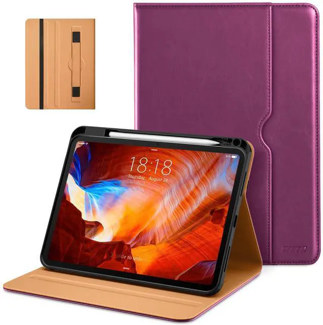 DTTO for iPad Pro 11 inch Case (M5/M4) 2025/2024, Premium Leather Business Folio Stand Cover with Pencil Holder - Auto Wake/Sleep and Multiple Viewing Angles, Purple