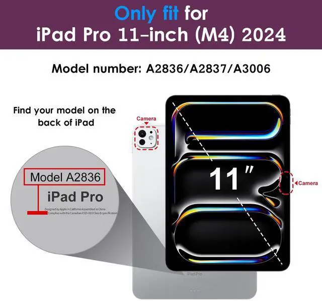 Compatibility - Specifically designed for iPad Pro 11-inch (M4) 2024 released (Model Number: A2836/A2837/A3006).Please check back bottom of your iPad to find the model number