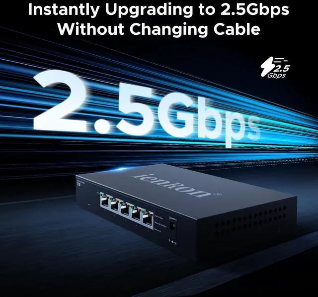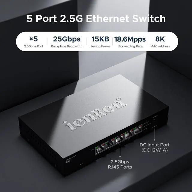 5 Port 2.5g Ethernet Switch: Enjoy Unmatched Speed And Reliability With The ienRon 2.5 gb Switch, Featuring Five 100/1000/2500Mbps Rj45 Adaptive Ports, supporting Auto Negotiation and Auto MDI/MDIX.Perfect For Seamless Data Transfer In Your Home Or Office Network.