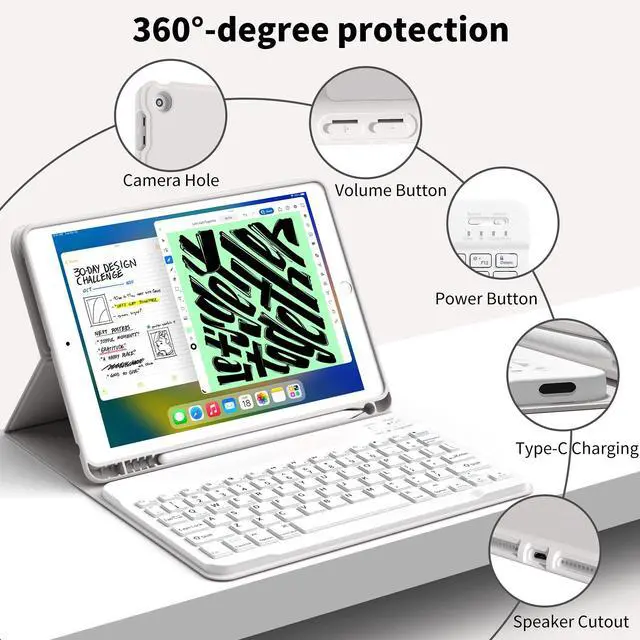 Premium Vegan Leather ProtectionCrafted with luxe-grade PU leather, the iPad 10.2 inch Keyboard Case delivers a sophisticated texture that's both cloud-soft to touch and business-ready in appearance.With scratch-resistant coating that repels daily wear. Every functional detail stays accessible th
