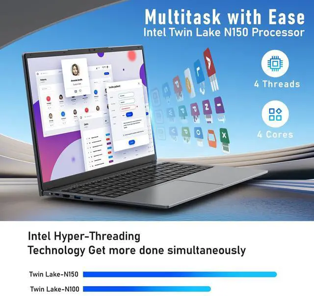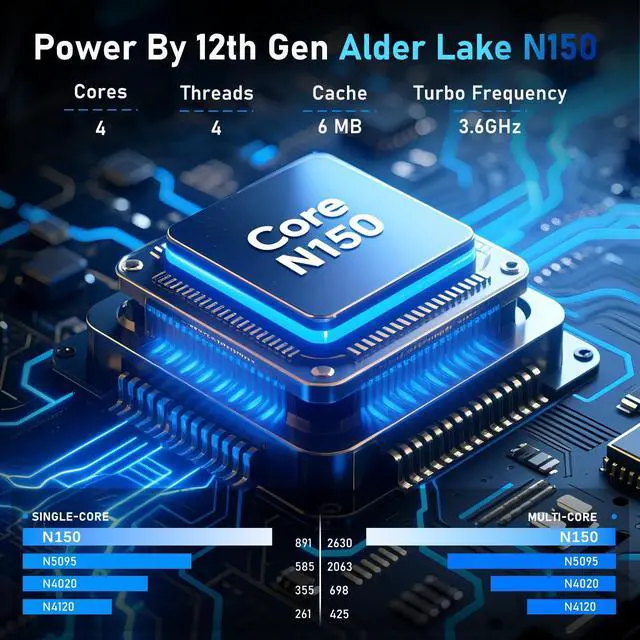 Energy-Efficient Multitasking & Light GamingThe N150 processor delivers rapid multi-program responsiveness with outstanding low-power efficiency. Its TDP-optimized architecture enables seamless app switching and smooth light gaming performance on minimal energyextending battery life without sacrificing speed. Perfect for remote work, all-day productivity, and casual gaming, it balances efficiency and performance for everyday computing needs.