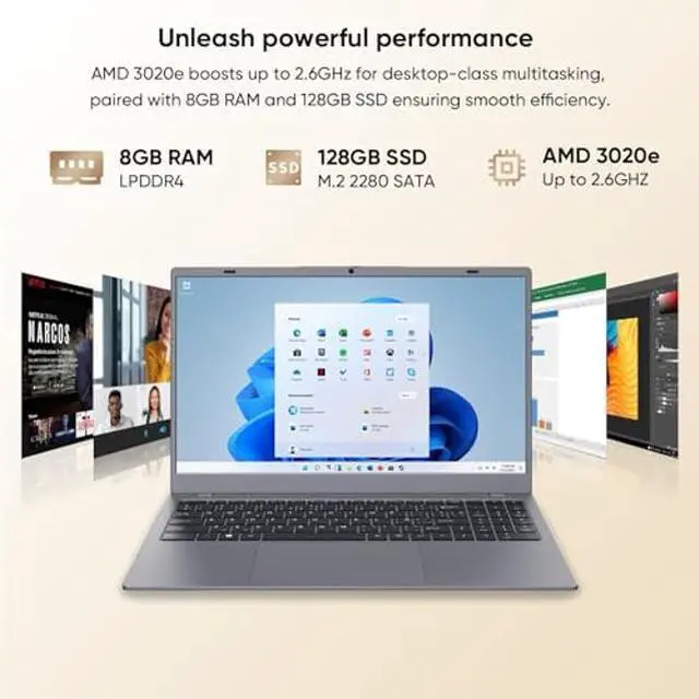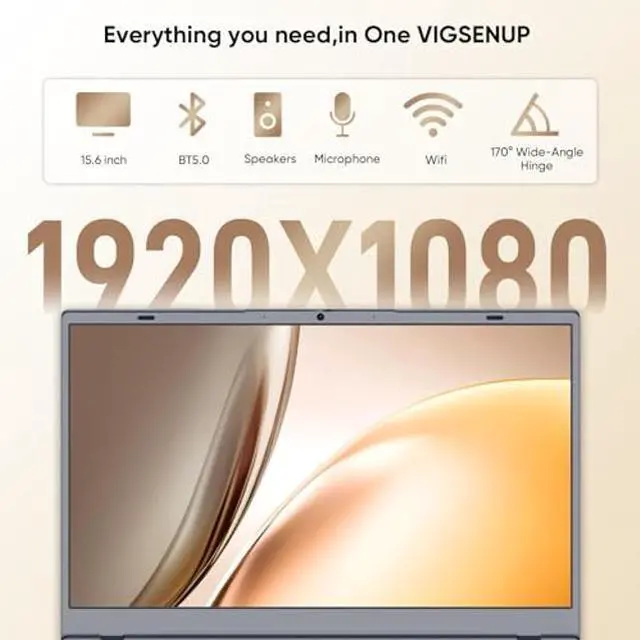 VIGSENUP Laptop, 15.6 '' Laptop Computer, 8GB RAM LPDDR4 128GB SSD (Expandable to 1TB), AMD Athlon Processor Up to 2.6 GHz, WiFi 5, BT 5.0, Webcam, Poratable Student and Business Laptops
