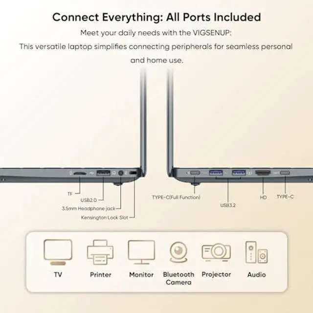 [Upgrade-Ready Performance]This VIGSENUP laptop computer arrives preloaded with 8GB LPDDR4 RAM and a 128GB SATA3 SSD, featuring easily accessible slots for expanding both memory and storage ideal for students and multitasking professionals who anticipate future software upgrades or growing data needs.