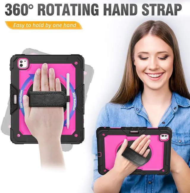 HXCASEAC for iPad Pro 13 Inch Case (M5/M4) 2025/2024, Shockproof Design with Pencil Holder, Protector, Rotating Stand, Hand Strap, Heavy Duty Protective iPad Pro13 7th Gen Cover A2925, A2926 (Rose)