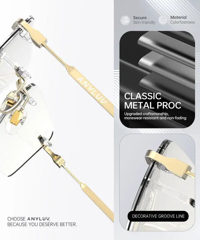 Zero Pressure Frameless Design: ANYLUV rimless construction eliminates pressure points, while flexible Metal hinges fit all face shapes whether you're a man needing durable blue light glasses men style or a woman seeking minimalist elegance.