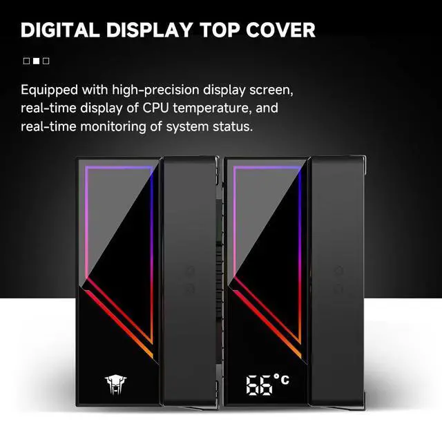 Digital Display Top Cover - Integrated high-precision screen real-time displays CPU temperature, enabling easy system status monitoring.