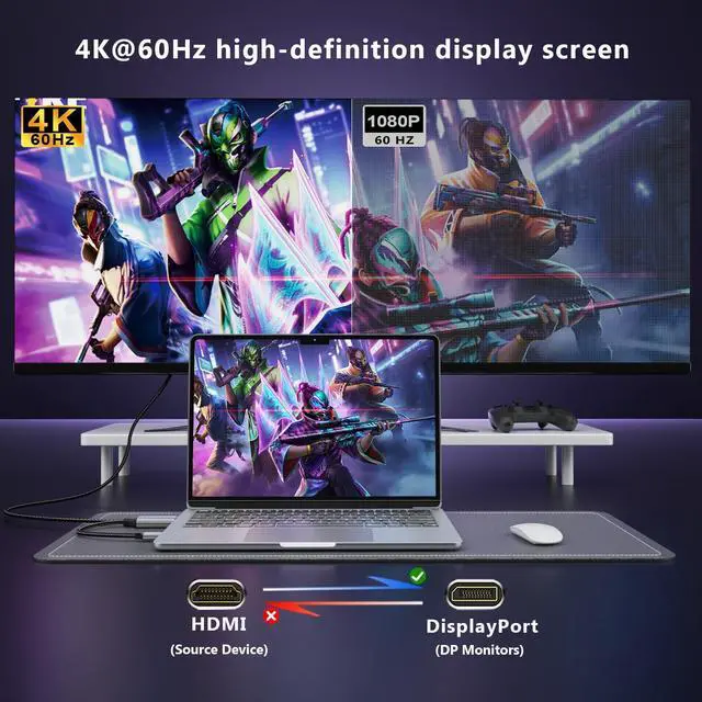 Excellent Performance, High Definition PresentationHDMI to DisplayPort Cable is built-in advanced IC chip, supports DisplayPort 1.2a, HDCP 1.3/1.4/2.2, HDMI 2.0 and other specifications, supports up to 4K@60Hz resolution, and is backward compatible with 2K@60Hz, 1080P@120Hz and other resolutions. Meanwhile, it supports 7.1, 5.1 or 2-channel uncompressed digital audio,bringing users a clear picture and high-quality sound experience.