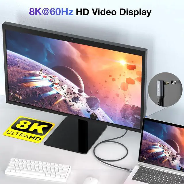 40Gbps Super Speed Data Transfer: USB C to USB C thunderbolt 4 cable up to 40Gbps data transfer, USB C monitor cable allowing you to transfer 2G files in 1 second, stream music, movies or TV shows for a full season, USB C high speed data transfer cable sync rate is 8X that of USB-C 2.0. Right-angle thunderbolt 40gbps cable is a best choies for thun