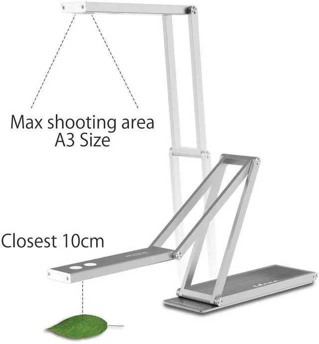 Extra-Wide Shooting Area. Extra-Close Focus DistanceThe flexible arm and high quality camera lens let you easily capture the whole page of a book (17.3x13, A3-size shooting area); or focus at just 10 cm close- almost like macro videos. From online-class to product demonstration and designing, Ideaos flexible shooting distance ensures outstanding video quality!