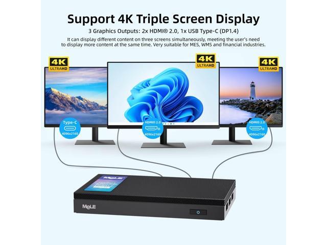 - Support 4K Triple Screen Display MeLE Quieter 3C mini computer supports 2x HDMI 2.0 + 1x USB Type-C (DP1.4) 4K Triple display, supports 4
