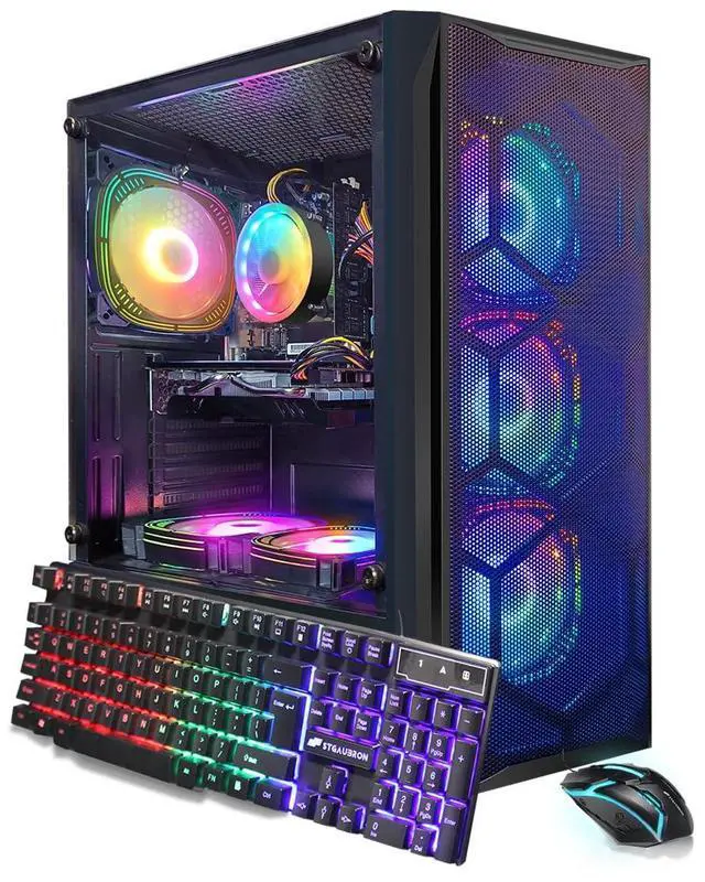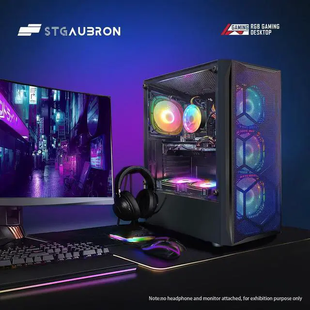 STGAubron Gaming PC Desktop Computer, Intel Core i7 8th Gen up to 4.1G, Radeon RX 580 8G, 16GB DDR4, 1TB SSD, WiFi 6, BT 5.2, RGB Fan x6, Windows 11 Home