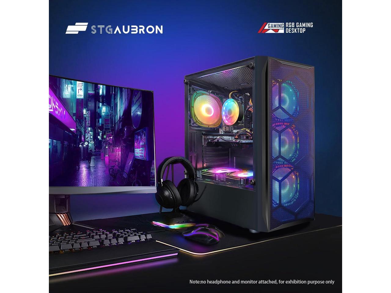 STGAubron Gaming PC Desktop Computer, Intel Core i7 8th Gen up to 4.1G, Radeon RX 580 8G, 16GB DDR4, 1TB SSD, WiFi 6, BT 5.2, RGB Fan x6, Windows 11 Home
