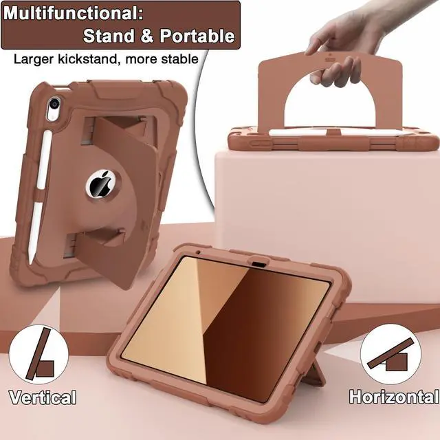 CCMAO Case for iPad 11 inch (A16) 2025/ iPad 10th Generation 2022 ( 10.9 inch) with Durable Kickstand, Pencil Holder, Hybrid Heavy Duty Shockproof Protective Case for iPad 11/10 Gen, Coffee
