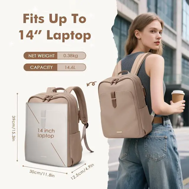 GOLF QUALITY Laptop Backpack for Women, Casual Work Business Backpacks Purse Carry on Travel Backpack, 14 Inch, Brown