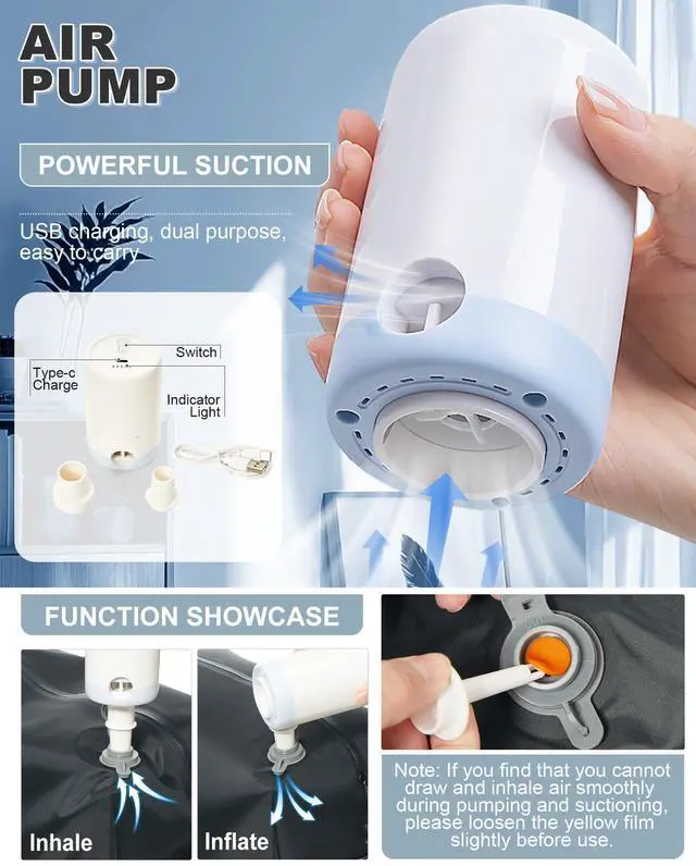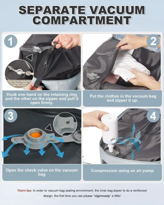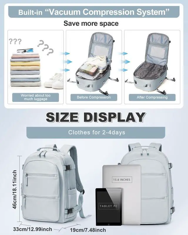 VGCUB Small Vacuum Backpack Travel with Electric Pump Vacpack System Storage Compression Waterproof College Bags Casual Daypack Carry on Backpacks for Women Men USB Charging Port Light Grayish Blue