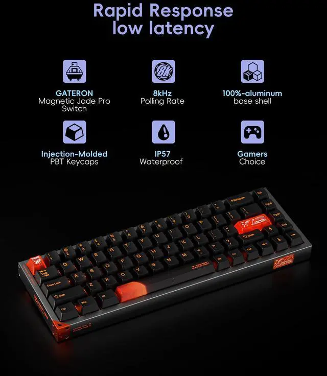 Unique design: The Piifox DF68 features a full aluminum alloy CNC base, dual-color injection molding + PC + thermal sublimation keycaps, IP57 waterproof rating, so you don't have to worry about accidents during gaming. It also fea