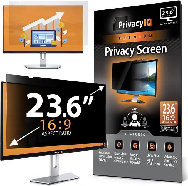 Privacy IQ 23.6" Inch 16:9 Monitor Privacy Screen-Filter for 60 Degree Privacy, Advanced Anti-Glare, UV Light Reduction & Blue Light Filter