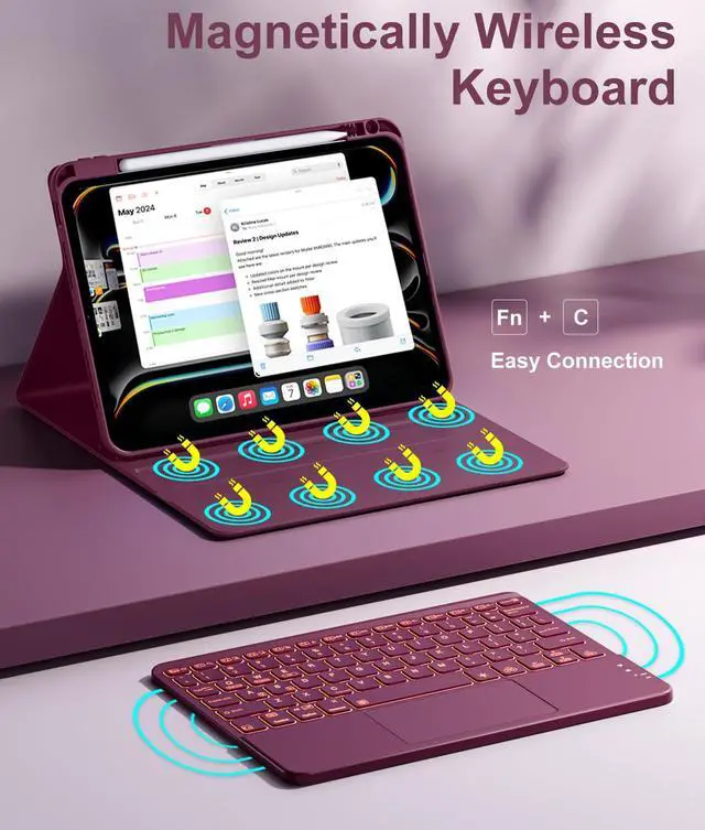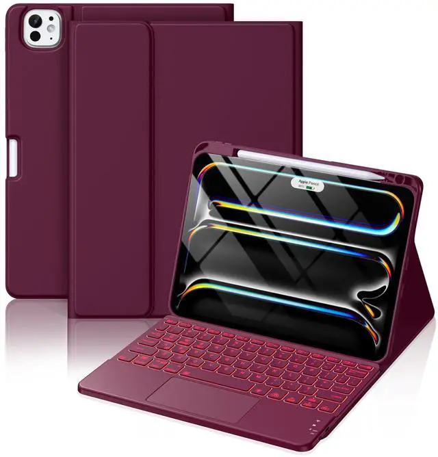 Hamile for iPad Pro 11-inch Case with Keyboard (M5/M4) - Magnetic Wireless Detachable Keyboard with Multi-Touch Trackpad 7 Color Backlit Stain Proof Folio Cover for Pro 11 Inch 2025 2024 - Dark Cherry