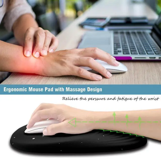 Package Included: 1 x Armanza Ergonomic Mouse Pad (no mouse). This is a high quality mousepad designed by Armanza! Entire memory foam with stepped-wedge design which can effectively relieve wrist pain. In daily life, a mouse pad with wrist support can help prevent long-term injuries like carpal tunnel syndrome, tendonitis, and other repetitive strain injuries. It provides a natural and comfortable posture for the wrist, reducing strain and fatigue on the wrist and forearm. This can be especially beneficial for people who spend long hours working or gaming on the computer.