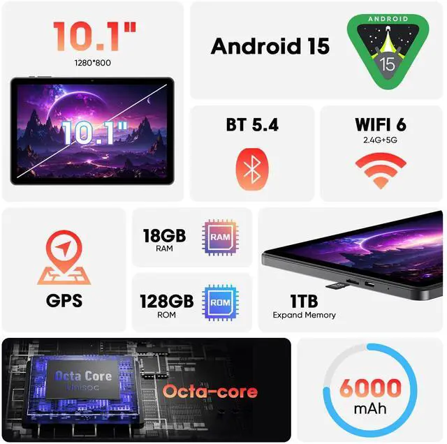 [Octa Core Android 15 Tablet] The Android tablet features the operating system Android 15 and an 2.0 GHz octa-core processor. ensure of excellent performance, seamless multitasking, getting rid of unexpected ads, emphasizing privacy and security by designing enhanced app permissions, giving users complete management control.this 10 inch tablet easily zips through everyday apps and games. Say goodbye to lag and hello to seamless multitasking.