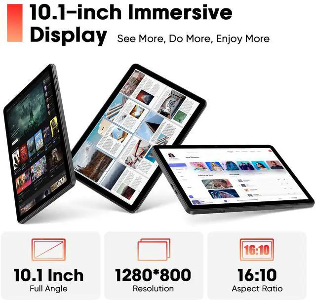 [10.1 Inch Display + Widevine L1] The tablet with a 10.1 inch 1280*800 IPS display, providing a realistic visual experience with clear details. Using IPS Incell fully laminated display technology, the screen is clearer, richer in color, and also provides a wider viewing angle. Effectively filters harmful blue light, reduces eye fatigue and irritation, and protects your vision health.