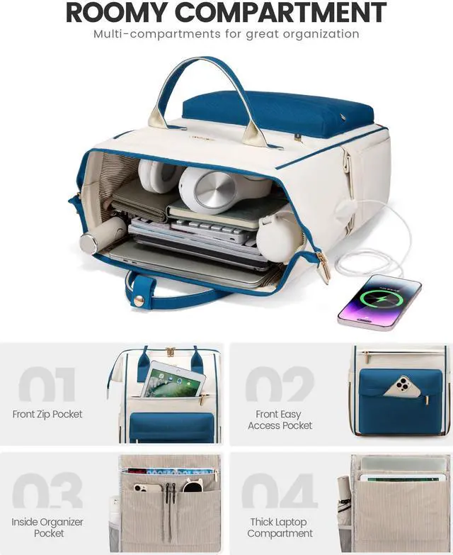 [Wide Open Design Laptop Bag]This laptop bag for women features wide-open main compartment for instant access to your 15.6" laptop. With 2 compartments and 16 strategically placed pockets, it effortlessly organizes textbooks, medical supplies, and all your travel essentials - ensuring users can locate items in seconds. Perfect as work bags for women or nurse bag, teacher bag,travel bag, college backpack,etc.