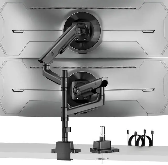 monTEK Sleek Aluminum Monitor Arm for 1757 Ultrawide Screens up to 59 lbs, USB 3.0 A/C, Heavy Duty Dual Monitor Arm Desk Mount, Pneumatic Lift, Quick-Release Plate, Clamp/Grommet, Max VESA 100x100