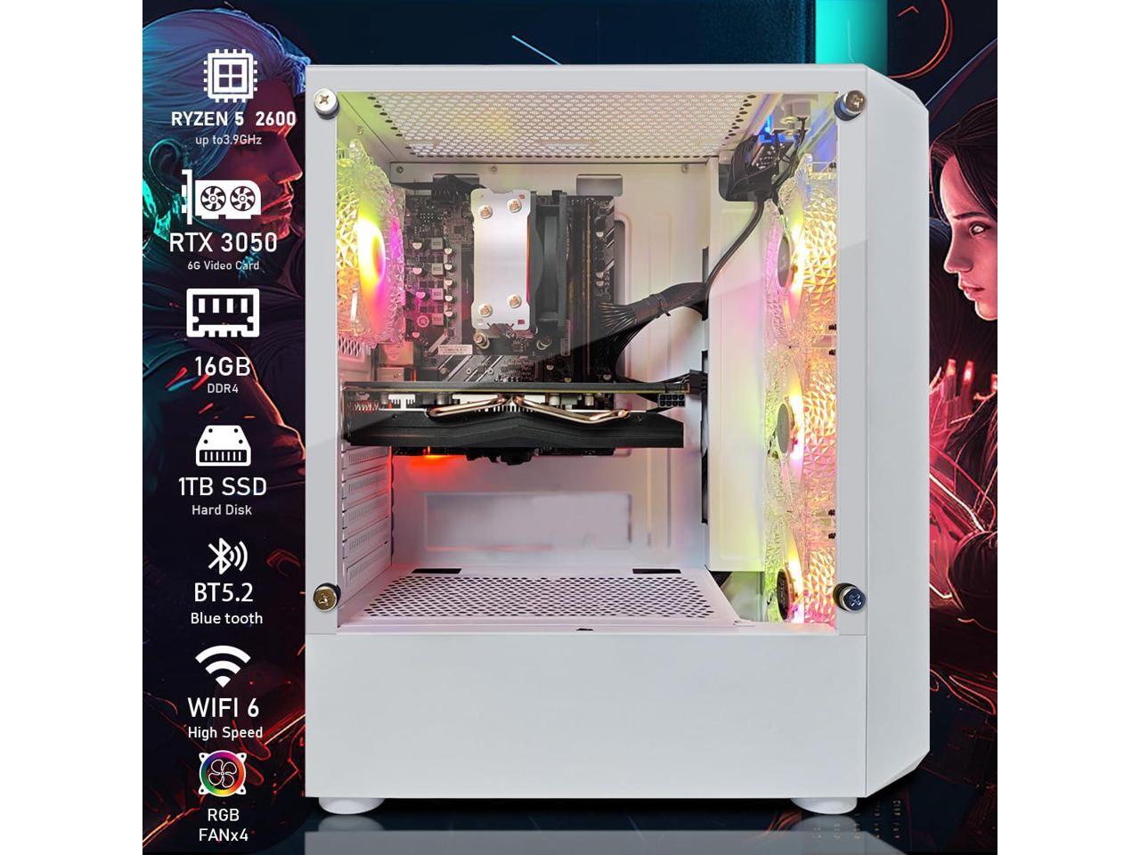 STGAubron Gaming PC Computer Desktop, AMD Ryzen 5 2600 up to 3.9G, GeForce RTX 3050 6G, 16GB DDR4, 1TB SSD, WiFi 6, BT 5.2, RGB Fan x4, Windows 11 Home