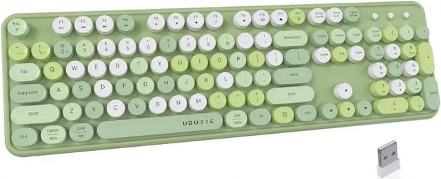 UBOTIE Dual Mode Colorful Wireless Keyboard, Bluetooth and USB Receiver Retro Typewriter Round Keycaps Keyboard Support Multi Devices for PC Laptop Tablet Phones(Green Colorful)