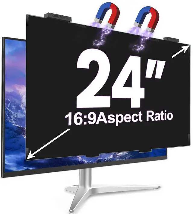 GUDTEKE Magnetic 24 Inch Privacy Screen for Computer Monitor 16:9 Aspect Ratio, Hanging Removable Anti-Blue/Glare Protector Film, Anti Spy Desktop Security Private Filter 24in