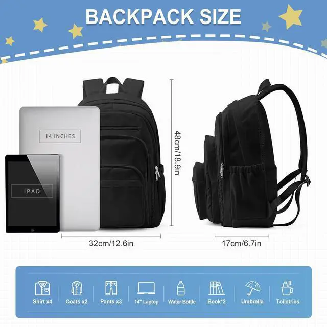 weradar Black School Backpack For Women Men, Lightweight Casual Daypack College Backpack, Aesthetic Students Bookbag, Backpack With Lots Of Pockets,Cute High School Bag For Boys Girls