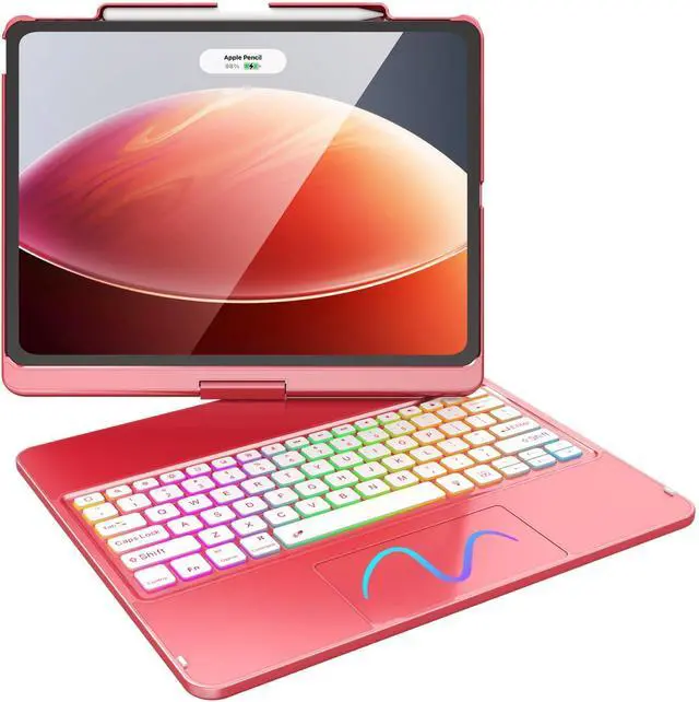 FUWANG Touch Keyboard Case for iPad Air 13 inch (M3 2025/M2 2024) and iPad Pro 12.9 6th 5th 4th 3rd Gen, 360° Swivel 7 Colors Backlit for iPad Air 13 inch Case Keyboard with Multi-Touch Trackpad, Red