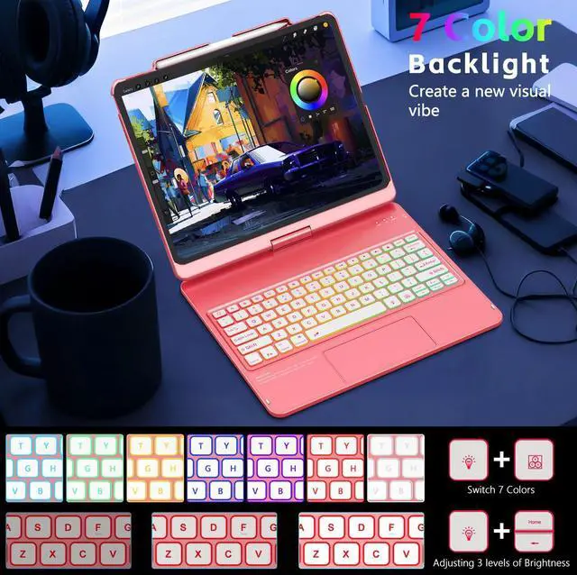 7 Colors Backlit Keyboard for iPad Air 13 inch: A full row of like laptop shortcut