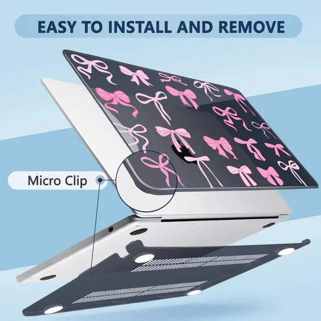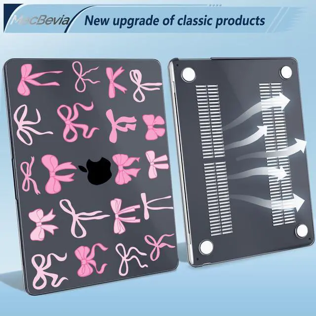 MecBevia Compatible with MacBook Air 15 inch Case, M4 A3241/M3 A3114/M2 A2941 (Released 2025 to 2023), Hard Shell, Keyboard Cover, Screen Protector, Webcam Cover & Type-C Adapter, Black Bows