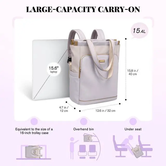 VERSATILE & SECURE TRAVEL COMPANION - Seamlessly transition from work to play with our convertible tote backpack. Wear it as a backpack or carry it like a tote bag, suitable for any occasion. With hidden pockets for shoulder straps, a back zipper pocket, and a luggage strap, our backpack ensures your valuables stay safe and secure while you're on the move.