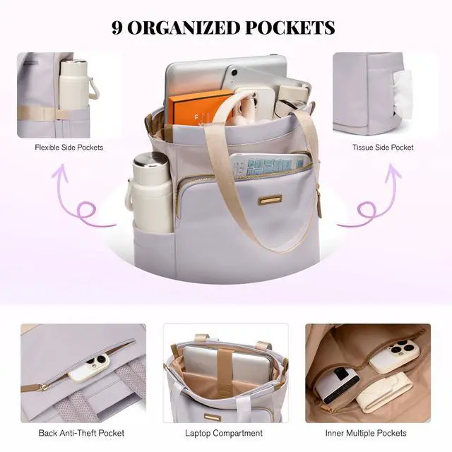 GOLF SUPAGS Convertible Laptop Backpack for Women Casual Daypack Notebook Tote Bag for Work College Travel Leisure (Taro Purple & White)